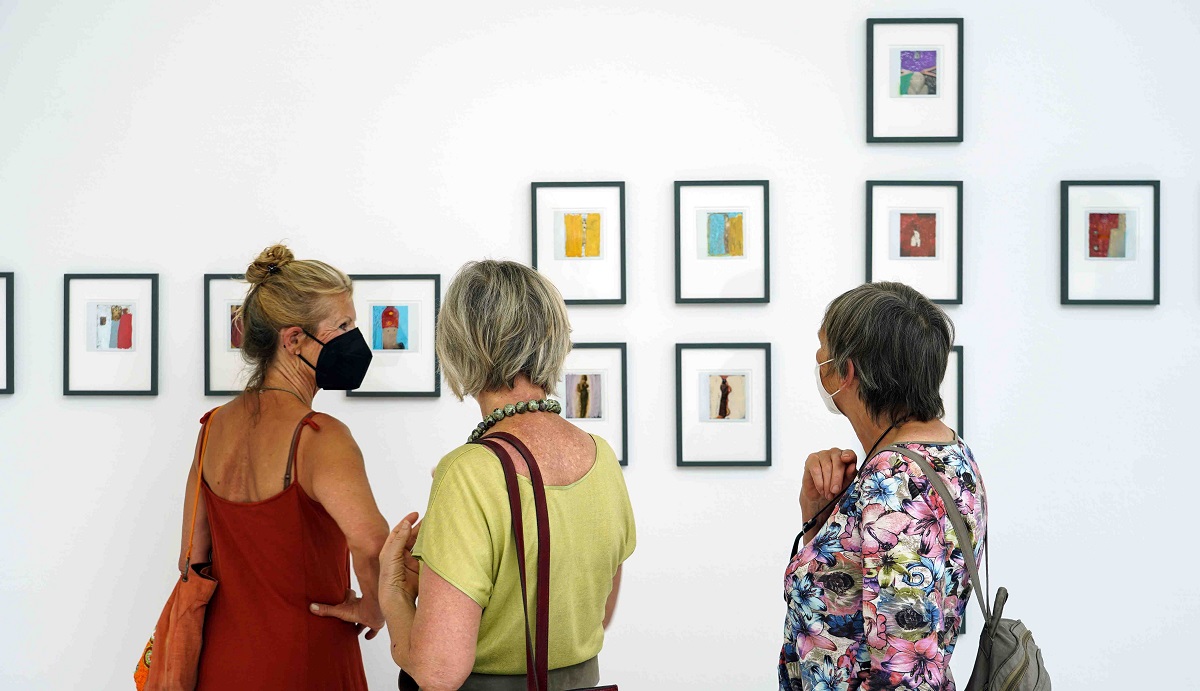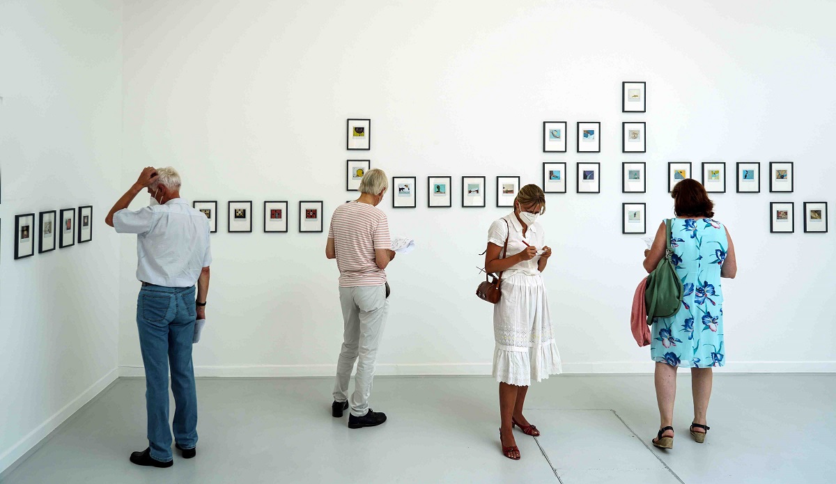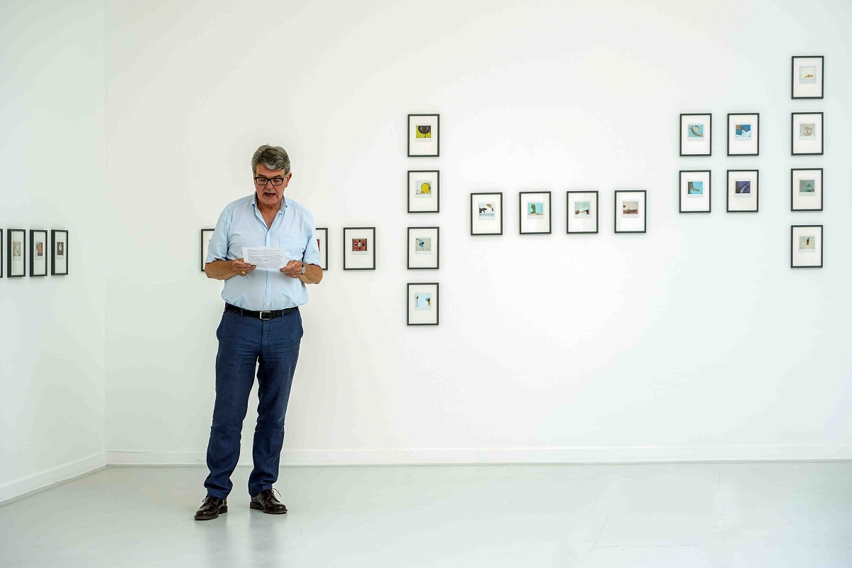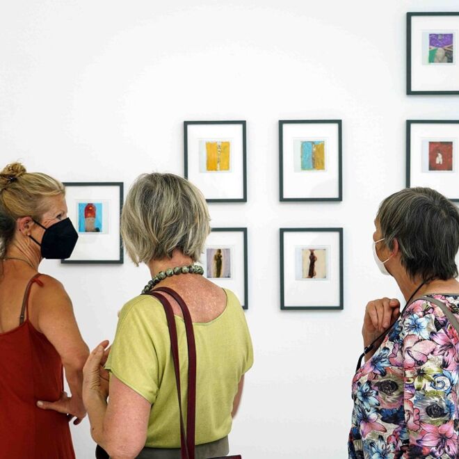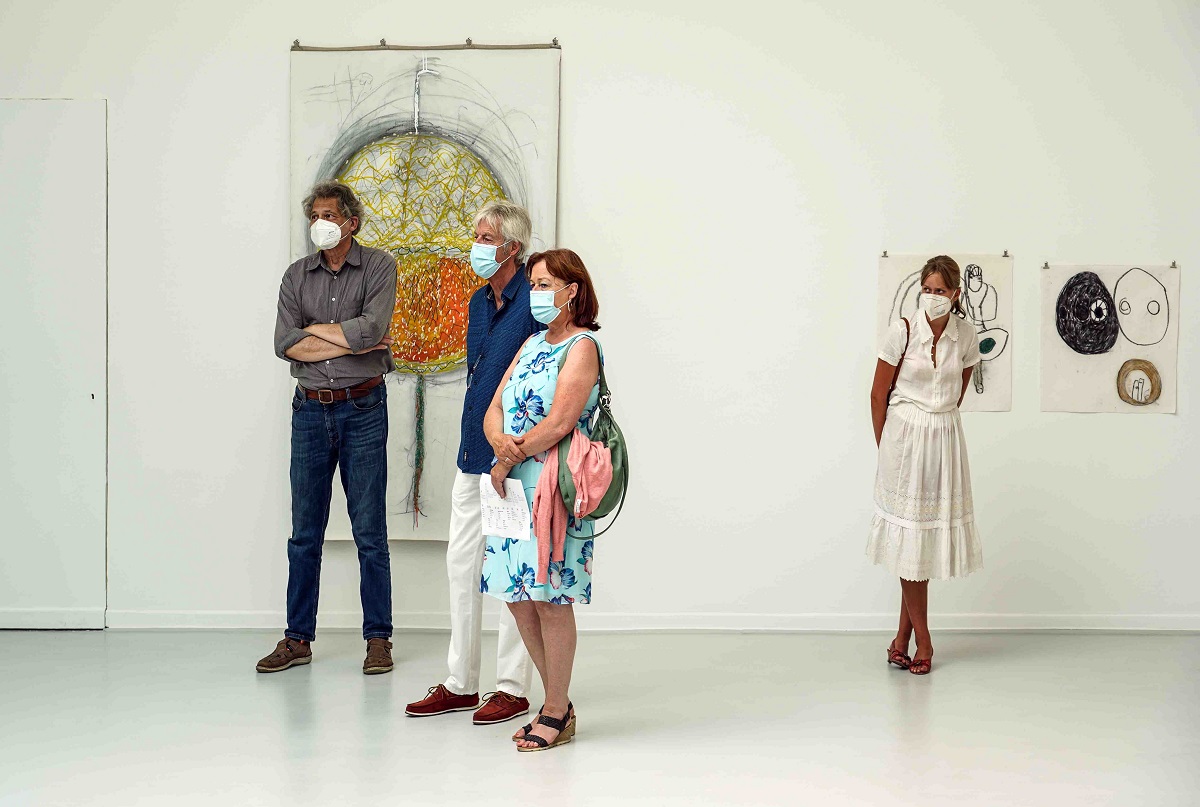 Die kleinformatigen, leuchtend farbigen Polaroid-Transformationen werden in der Ausstellung des Kunstvereins Konstanz in lebhaftem Kontrast zu großformatigen Arbeiten gezeigt, u.a. Kohlezeichnungen, deren prägnant-sparsamer Strich Formen und Figuren leicht und wie improvisiert entwirft.
