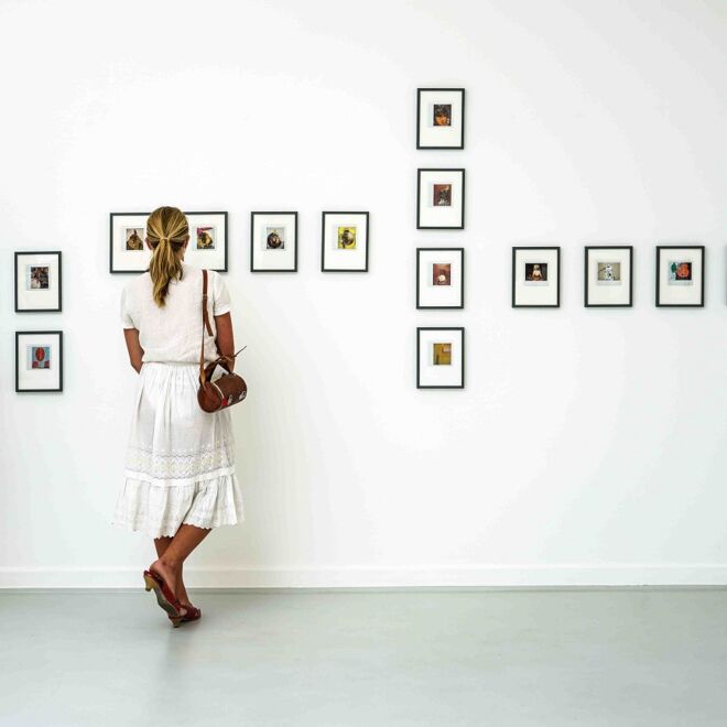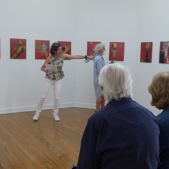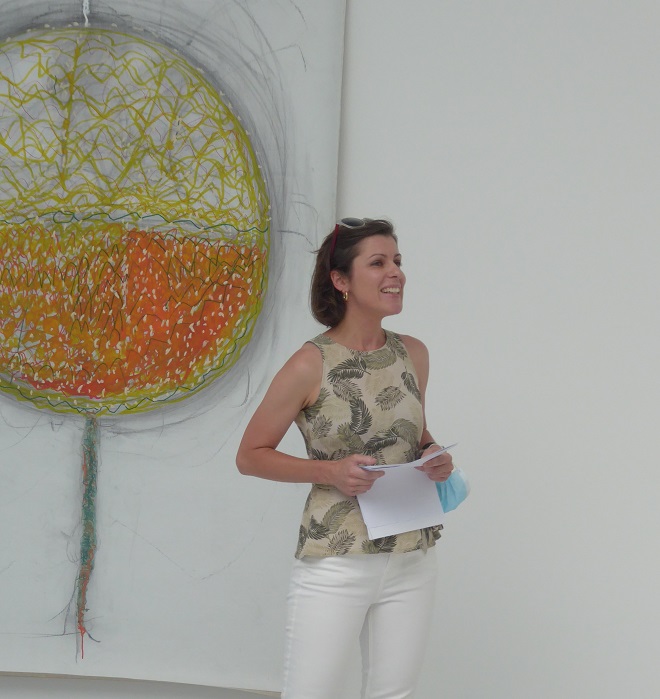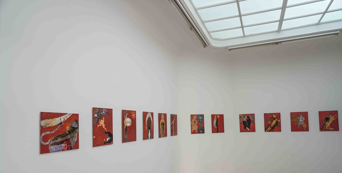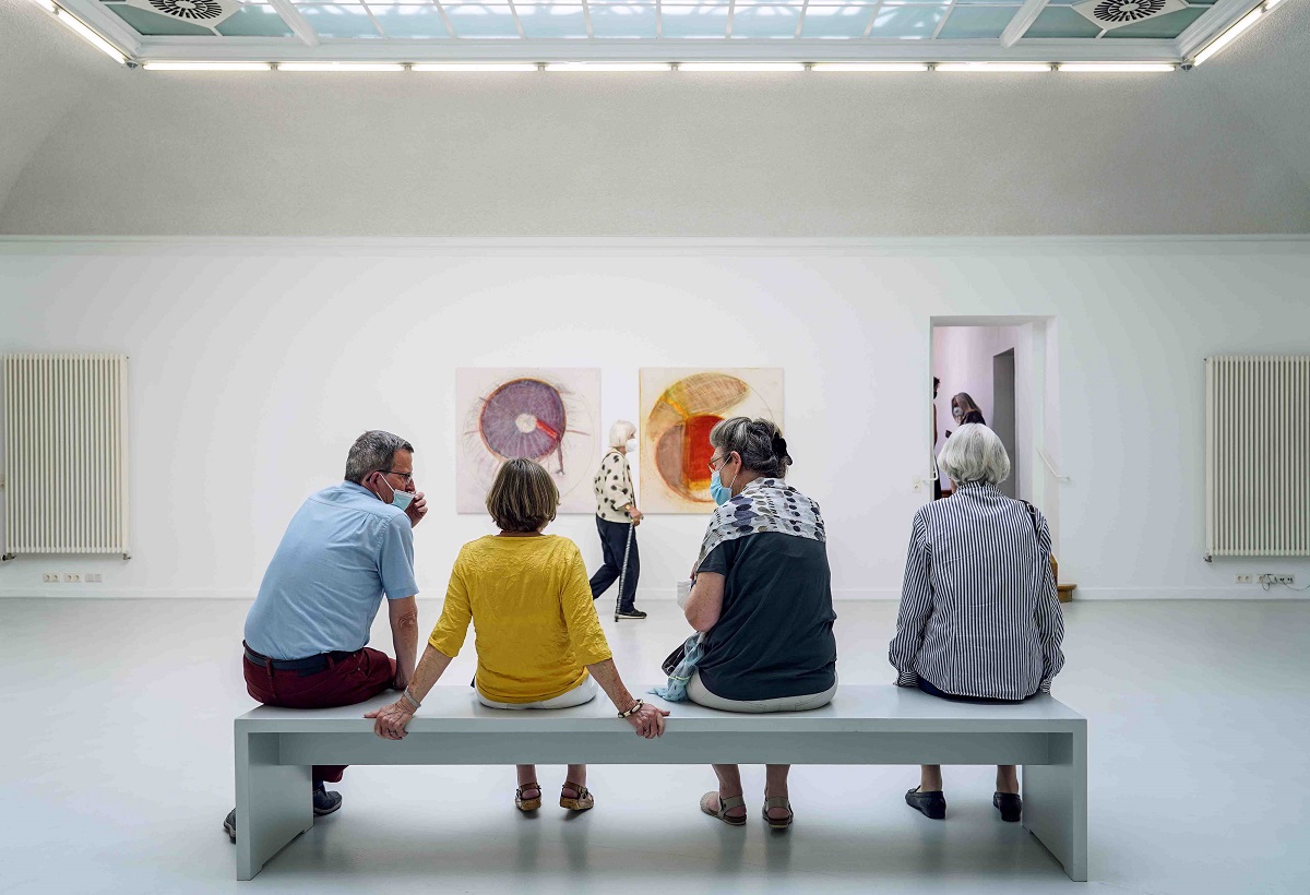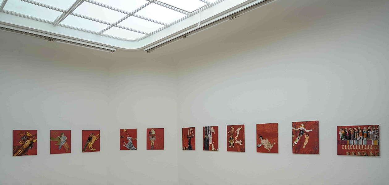 Die kleinformatigen, leuchtend farbigen Polaroid-Transformationen werden in der Ausstellung des Kunstvereins Konstanz in lebhaftem Kontrast zu großformatigen Arbeiten gezeigt, u.a. Kohlezeichnungen, deren prägnant-sparsamer Strich Formen und Figuren leicht und wie improvisiert entwirft.
