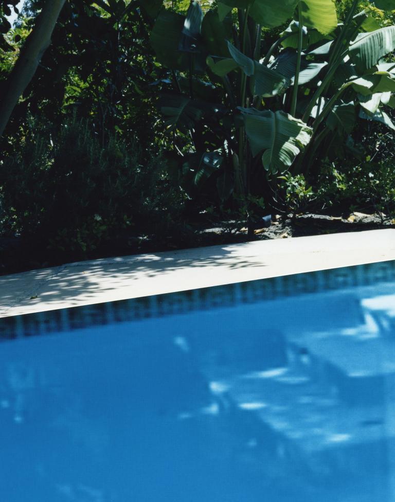 Für ihre Ausstellung im Konstanzer Kunstverein erweitert sie unter dem Titel "L´Autre et son Double" ihren Blick von Innenräumen auch ins Freie: die Ansicht eines blauschimmernden Schwimmbeckens vor üppig wucherndem Pflanzengrün lässt den Betrachter nur anfänglich unbefangen schwelgen. Nur auf den ersten flüchtigen Blick ist das Bild als werbeträchtige Einheit wahrzunehmen, die mit der offensichtlichen Verlassenheit eines tropischen Pools lockt. Jeder weitere Blick nimmt Irritierendes wahr. Die milchig unscharfe Wasserstruktur steht einer überscharfen Pflanzenkulisse entgegen, die gerade noch wahrgenommene Bildeinheit löst sich auf. Aber auch die Suche nach Übergängen zwischen unterschiedlichen Bildebenen stellt die ursprüngliche Gewissheit nicht mehr her: zu perfekt versteht die Künstlerin ihr Handwerk der Bildmontage, bei der Schnittkanten reliefartig gegeneinander gesetzt werden.