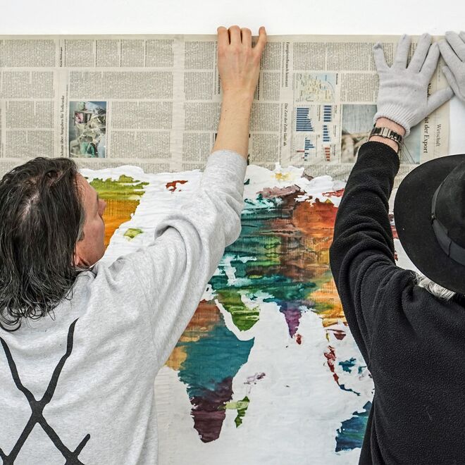 Die Arbeit beider Künstler geht aus von Bildern und Materialien, die Spuren des Gebrauchs oder Verfalls aufweisen. Indem sie die Materialität gebrauchter Dinge hinterfragen, bringen beide Künstler Reflexionsprozesse in Gang, in denen geschichtliche, zeitlich-räumliche oder psychologische Formen von Vergangenheit verarbeitet werden.