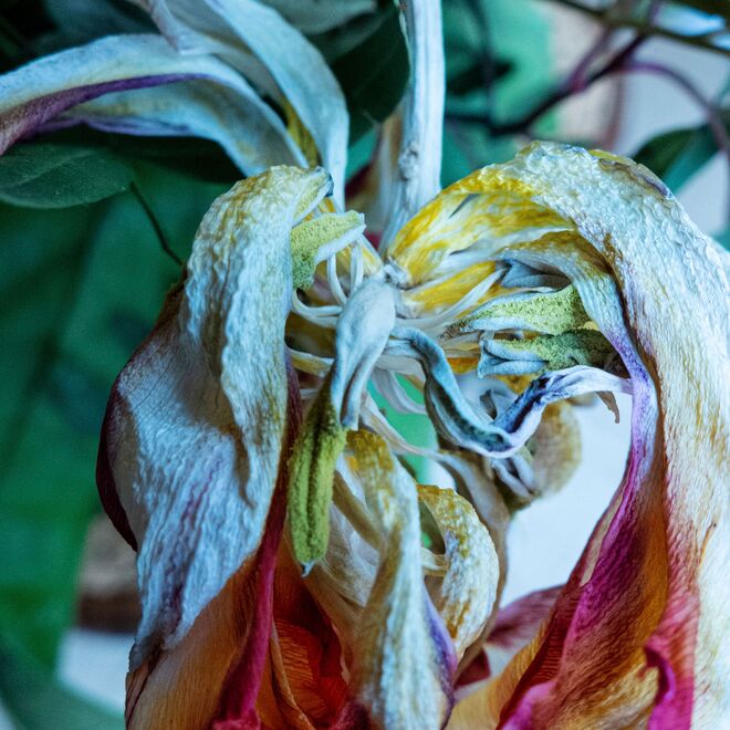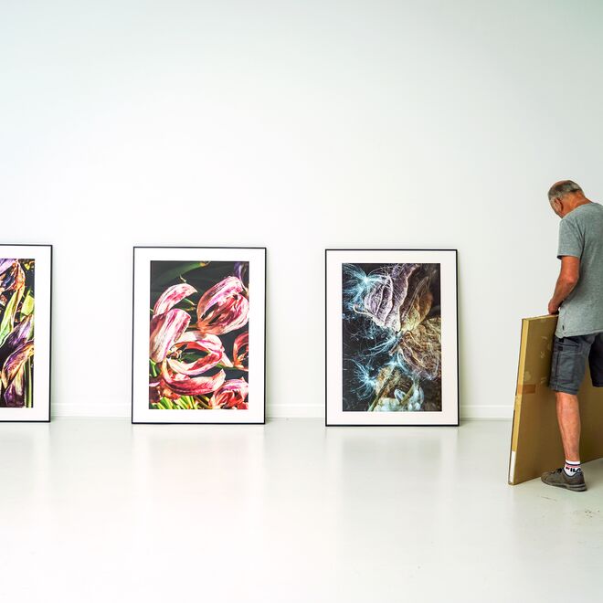 Immer wieder gelingt es der berühmten Künstlerin zu überraschen. Bisher widmete sie sich in zahlreichen Serien und Langzeitstudien dem Bildnis des Menschen, nun schenkt sie in ihrer jüngsten Werkgruppe ihre ganze Aufmerksamkeit der Welt der Pflanzen und Blüten. Ihre farbenprächtigen Kompositionen zeugen vom Werden und Vergehen der Natur. Zunächst scheint sie eine gänzlich neue Richtung einzuschlagen, aber dann offenbart sich das verbindende Thema der Veränderung: Nichts bleibt, wie es ist.