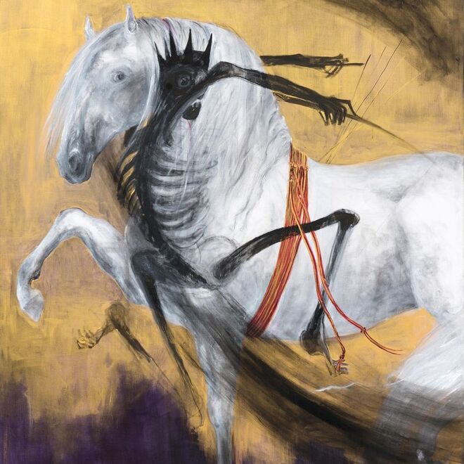 Kräftige Farbakzentuierungen, üppiger Goldauftrag bringen die dargestellten Figuren, weiße Damen und ausgebleichte Skelette, in tänzerische Bewegung, ein leichthin schwebender Totentanz. Allerdings erschöpfen sich die Bildszenen Christa Nähers nicht in barocker Heiterkeit, immer dabei sind dunkle Töne, düstere Flächen, in deren Schwärze geisterhafte Wesen durchscheinen. Diese buchstäbliche Vielschichtigkeit ihrer malerischen Arbeiten weist auf Christa Nähers prozesshaften Malstil zurück: Immer wieder übermale sie, halte Bilder für noch unfertig, greife wieder ein, verändere.