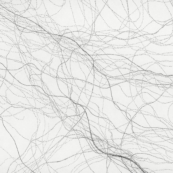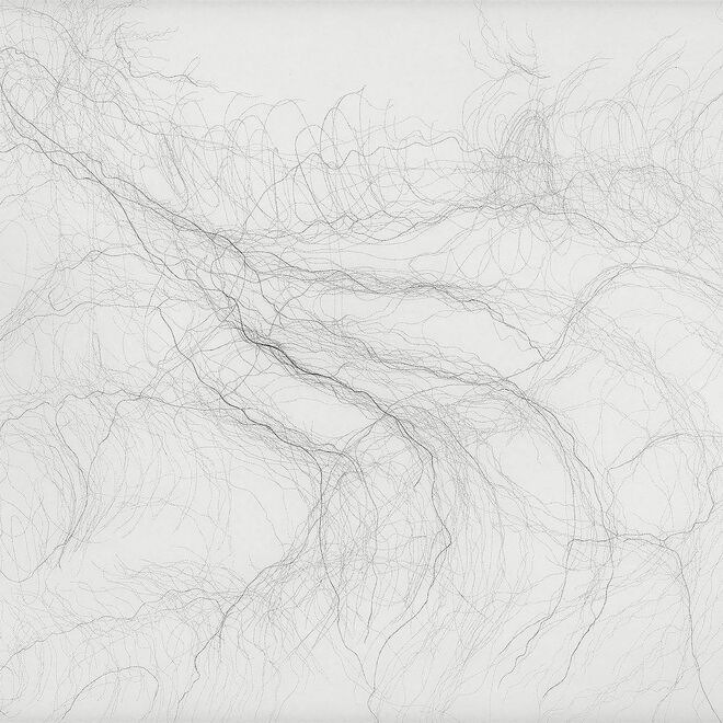 Ihre filigranen Zeichnungen aus kleinsten Buchstaben erinnern an neuronale Netzwerke und Areale des menschlichen Gehirns. Sie basieren auf Skizzen, die sie während Hirnoperationen an der Charité Berlin als Zuschauerin anfertigt.