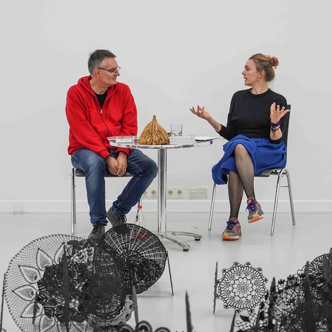 Der Pfahlbau-Archäologe Urs Leuzinger und Andrea Vogel zetteln ein Gespräch an und spannen die Fäden zum Anfang aller Anfänge der Textilindustrie und wieder zurück. Die BesucherInnen sind herzlich eingeladen mit zu spinnen.