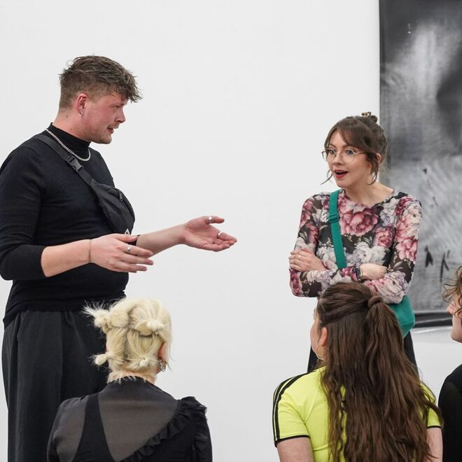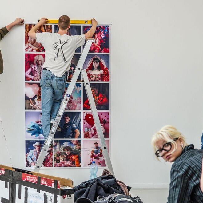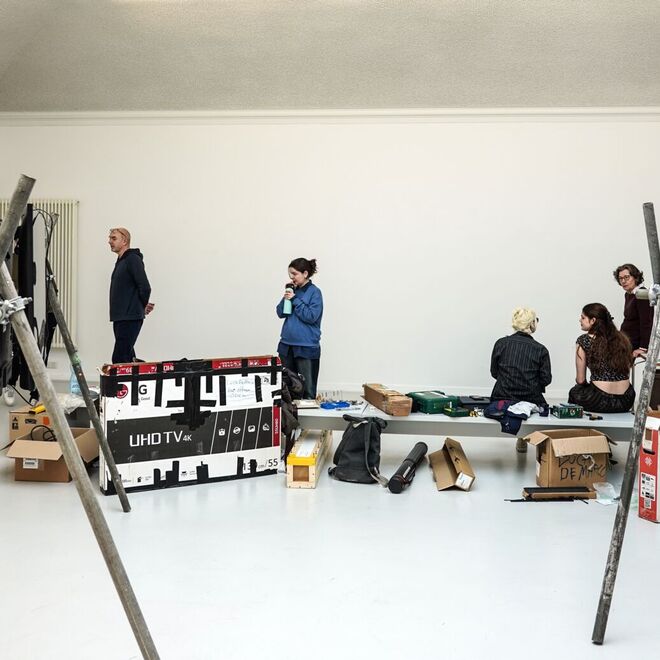 Beteiligte Künstlerinnen und Künstler: Laura Alker, Patricia Falk, Andrew Friedrich, Antonia Gruber, Jannes Heidemann, Stina Hellmann, Luca de Marco, Barbara Meloni, Smita Leismann, Jan Mertens, Tobias Rummel, Viktoria Schuller, Zoe Thomas, Solveig Turner, Mio Zajac und Michael Reisch.