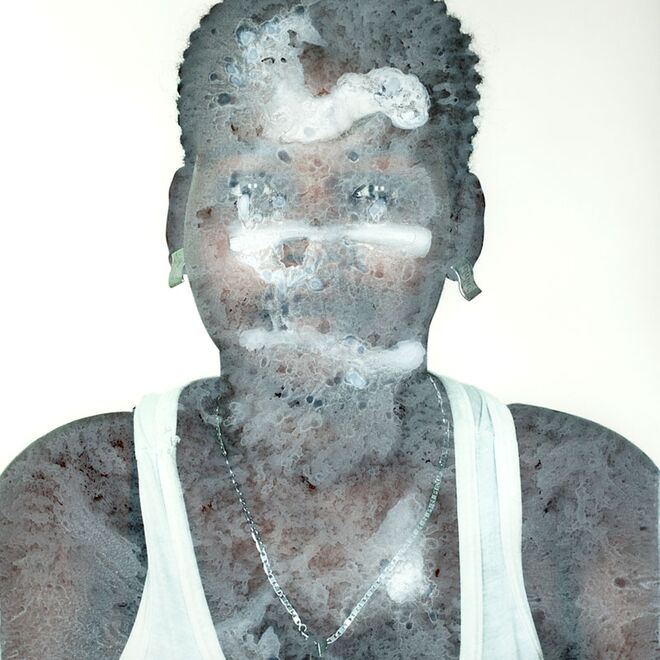 Nicolai Rapp wiederum thematisiert in seinen Photographien die Sehnsucht von vielen Afrikanern, aber auch Indern nach einer helleren Haut. Die Haut wird mit Bleichcremes behandelt. Hier wird die Crème, die Hydrochinon enthält, auf die Fotographie aufgetragen, eine starke Chemikalie, die auf beim Entwickeln von Fotographie benutzt wird. Somit ist diese starke Crème an dieser Stelle ein Mittel, um das Aussen zu verändern, aber auch ein Stoff der im Innern des Mediums Photographie wirksam ist.