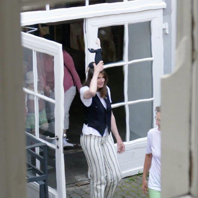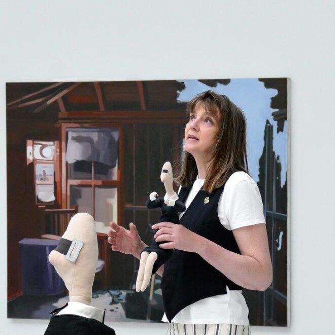 Das Bandagenwesen „Coco“, begleitet von der Künstlerin Conny Pfeffer (www.co-pfeffer.jimdo.com) und Irene Jellinek vom Kunstverein Konstanz, Gründerin von www.kreativekurse.de, begrüßt die Kinder im Oberlichtsaal des Kunstvereins. „Coco“ hat Aufregendes über die Welt der kreativen und ideenreichen zeitgenössischen Kunst zu berichten und macht uns Lust auf Kunst. „Coco“ lädt uns ein, die Welt der Museen zu erleben und zeigt uns, wie das geht.