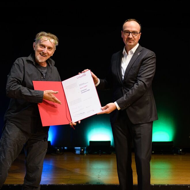 ich freue mich sehr, dass Dein Werk, das inzwischen über viele internationale Grenzen hinaus mit zahlreichen Ausstellungen verdiente Würdigungen erfahren hat, nun mit dem Konstanzer Kunstpreis ausgezeichnet wird.
