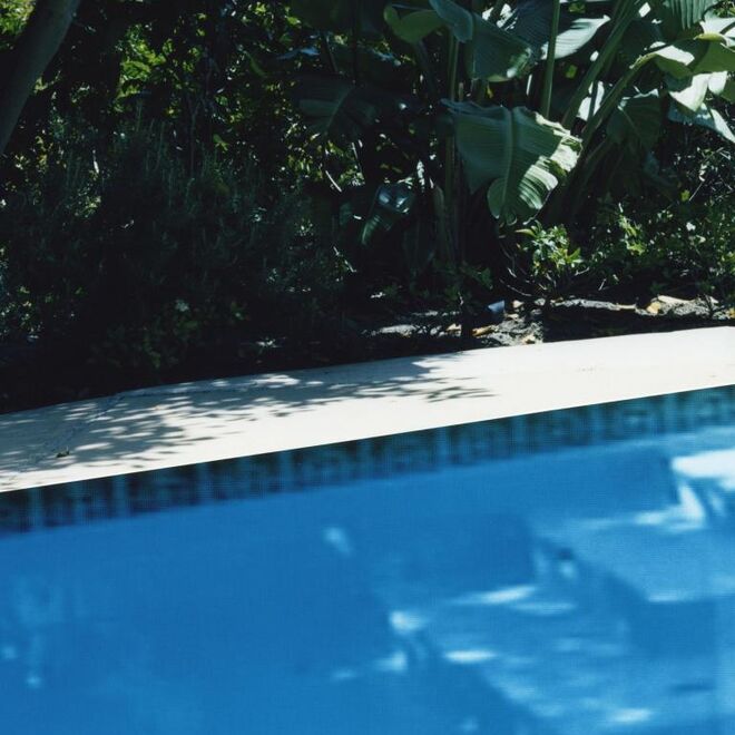 Für ihre Ausstellung im Konstanzer Kunstverein erweitert sie unter dem Titel "L´Autre et son Double" ihren Blick von Innenräumen auch ins Freie: die Ansicht eines blauschimmernden Schwimmbeckens vor üppig wucherndem Pflanzengrün lässt den Betrachter nur anfänglich unbefangen schwelgen. Nur auf den ersten flüchtigen Blick ist das Bild als werbeträchtige Einheit wahrzunehmen, die mit der offensichtlichen Verlassenheit eines tropischen Pools lockt. Jeder weitere Blick nimmt Irritierendes wahr. Die milchig unscharfe Wasserstruktur steht einer überscharfen Pflanzenkulisse entgegen, die gerade noch wahrgenommene Bildeinheit löst sich auf. Aber auch die Suche nach Übergängen zwischen unterschiedlichen Bildebenen stellt die ursprüngliche Gewissheit nicht mehr her: zu perfekt versteht die Künstlerin ihr Handwerk der Bildmontage, bei der Schnittkanten reliefartig gegeneinander gesetzt werden.