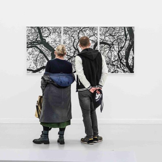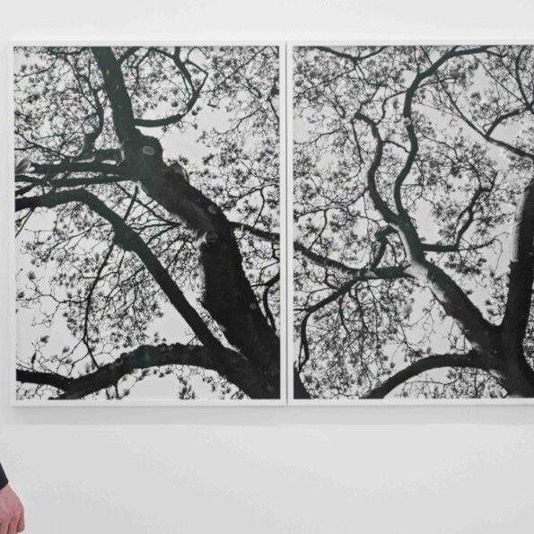 Nemes fotografierte die Partner kurz nacheinander mit dem schwer kontrollierbaren Verfahren der Doppelbelichtung. Sensibel tastete sie sich an die Paare heran, trennte sie in der ersten Belichtung und verwebte sie wieder in der zweiten. Zusammen mit einer ausgeklügelten Lichtregie fertigte sie außergewöhnlich anziehende Bilder, in denen Teile des Körpers sich scheinbar durchdringen und verschmelzen. Das Durchscheinende, teils Schwebende verleiht den Paaren etwas Jenseitiges, etwas Surreales - für Nemes Zeichen des Zaubers und der Magie des fotografischen Mediums. Über Kopf-, oder Halbportrait hinaus fokussierte sie die Anmut der sommerlich unbekleideten Arme und Beine und veranschaulicht uns die Zartheit der papierenen Haut auf überlebensgroßen Bildern. Die Begegnungen mit den teils steinalten Menschen waren äußerst berührend und ihre Erzählungen von Krieg, Flucht, Liebe, Glück, Kinderkriegen, Sehnsucht und Sterblichkeit inspirierten Nemes zu poetischen Versen, mit denen sie ihre Portraitdarstellungen ergänzt. Und noch ein Drittes, nämlich faszinierende Pflanzenbilder, runden die Reihe ab. In der gleichen Abstraktion des Schwarzweiß und mit der gleichen, ungemein reichen Palette an Grautönen, widmete sich Nemes immergrünen Gehölzen und Sträuchern. Sie sind ein Pendant zum Alter und gaben der Serie den Namen.