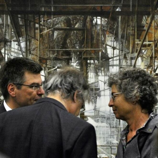 Wenn wir uns nun, meine Damen und Herren, vergleichbar Archäologen, die sich durch sedimentierten Ablagerungen vorarbeiten, Schicht für Schicht entlang und entlang der Oberflächen dieser Bilder hinunter arbeiten bis zu den Gegenständen, kommen wir zu jenem rätselhaften Moment, in dem die Gegenstände – einerseits – sich aus den vom Künstler hinterlassenen Spuren bilden, formen und – andererseits und in eben diesem Augenblick – sich auflösen in Strukturen aus Farbpunkten, Schleiern, Lichtern, Spritzer und Flecken. „Verblüffend“ nennt Alissa Walser das: „Ich wollte doch eigentlich seine [d.h. Holländers] Bilder sehen, und jetzt sehe ich plötzlich meinen eigenen Blick.“