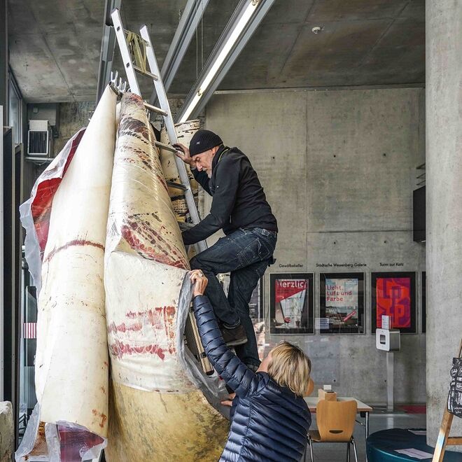 Im Foyer des KUZE Kulturzentrum am Münster ist aktuell diese Installation von Davor Ljubičić zu sehen.