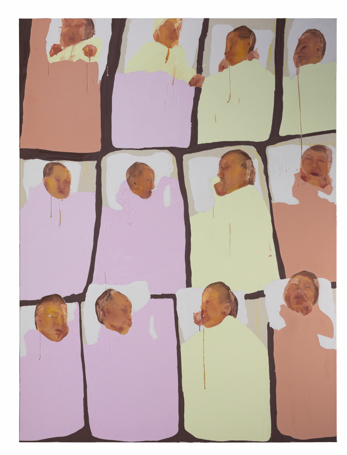 to pop up, 220 x 160 cm, Acryl, Öl und Lack auf Baumwolle, 2025