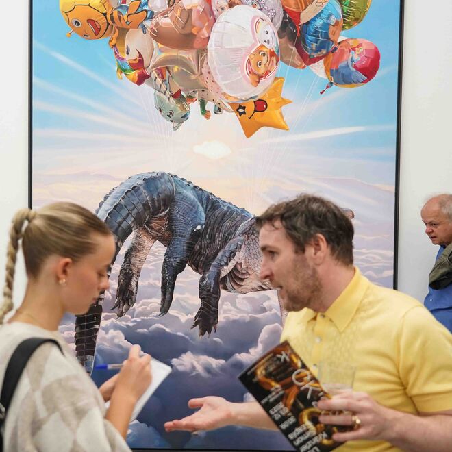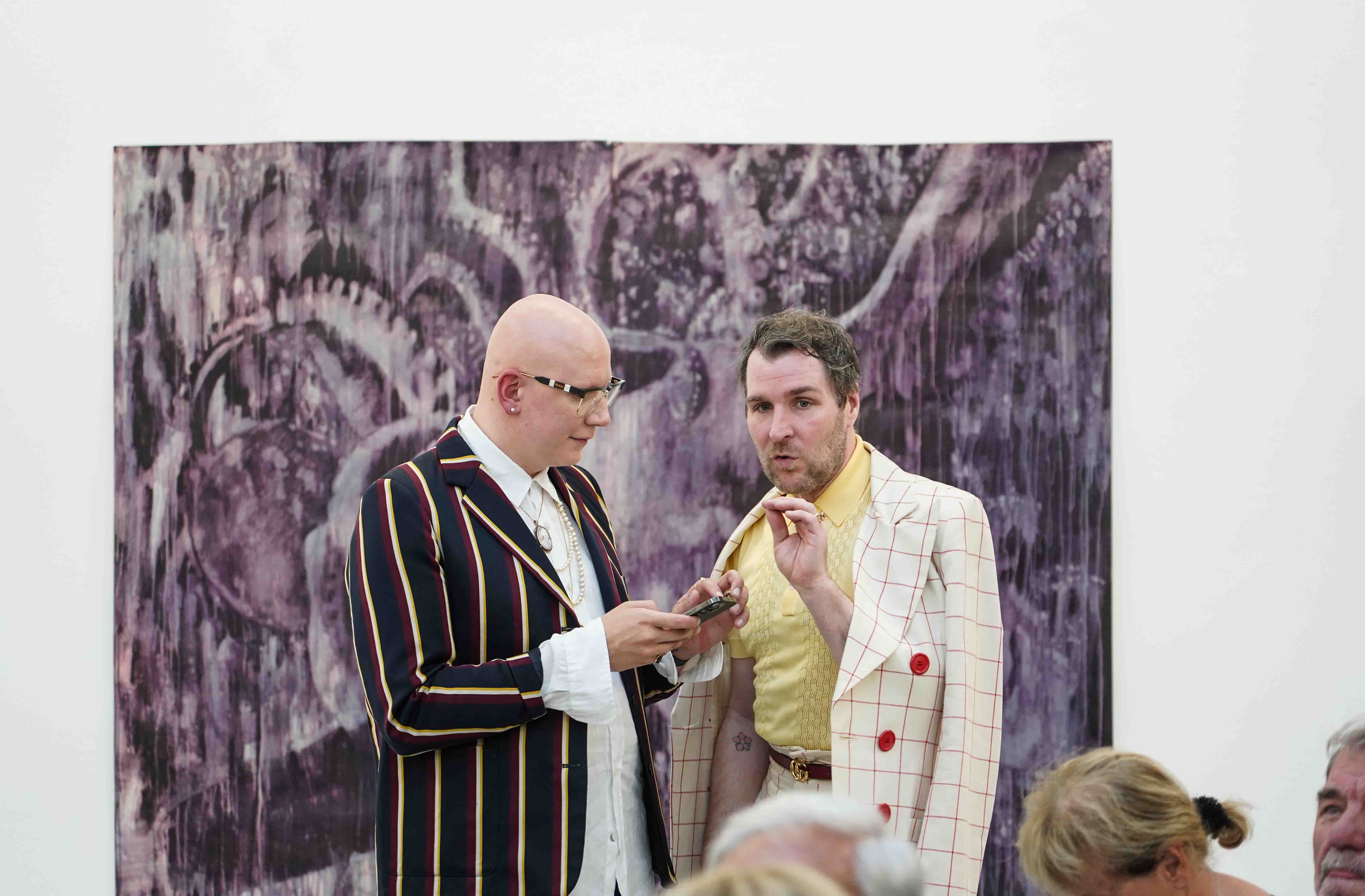 Die Ausstellung CK '23 bietet die Möglichkeit, sich durch das Betrachten der Bilder und das Lesen des Romans „Coming of Karlo" eine Parallelwelt zu eröffnen. Inwiefern entstammen die Malereien dieser Welt? Kann die lesende Betrachterin, der lesende Betrachter sich die Bilder durch den Prosatext erschließen? Welche Entdeckungen macht sie, macht er dabei? Verfällt man der Illusion, die Malereien total entschlüsseln zu können?