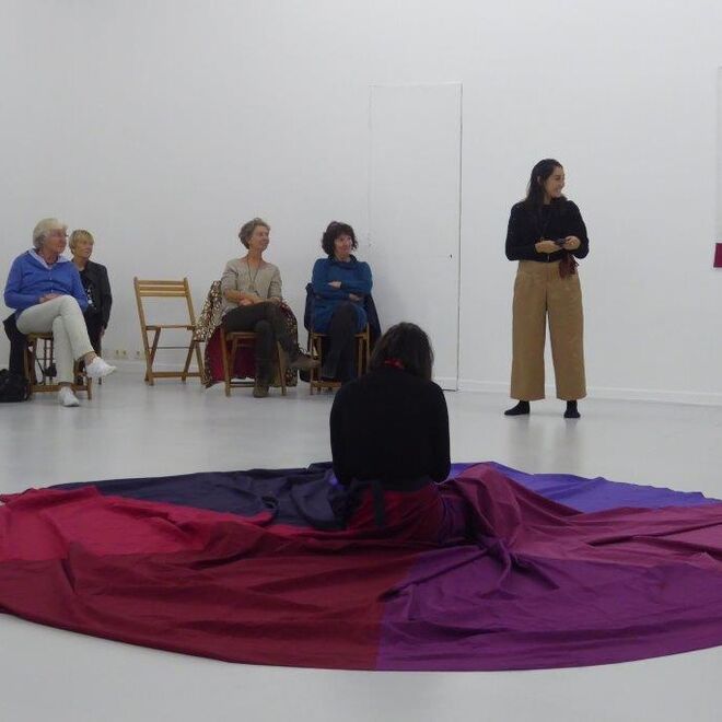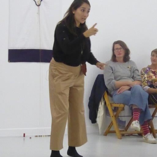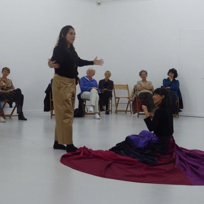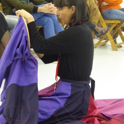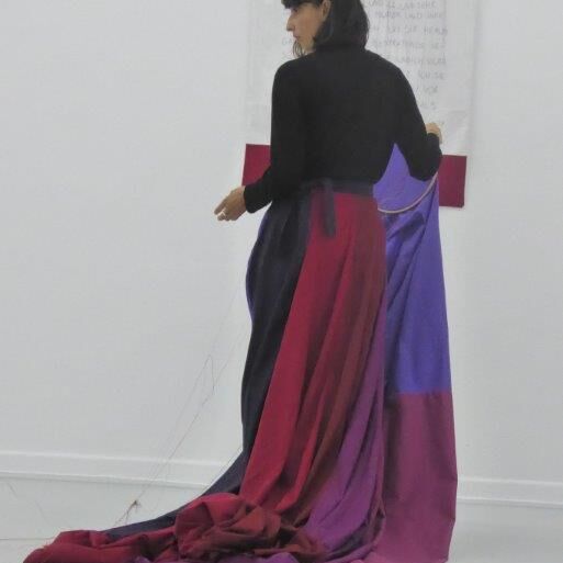 In der Performance sucht Verónica Troncoso nach Formen, Viktorias Geschichte zu vermitteln - durch Erzählen und Sticken auf einen langen, ausladenden Rock. In Zusammenarbeit mit Leicy Esperanza, die die Geschichte auf Deutsch erzählt, wird der Rebellion von Victoria Form und Körper gegeben.